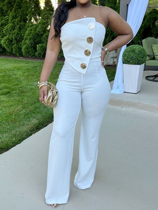 Sleeveless Strapless Stretch Wide Leg Jumpsuit