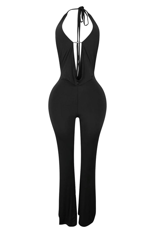 Curious Cowl Neck Halter Jersey Jumpsuit