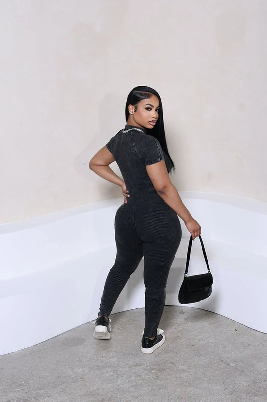 Camila Mineral Washed Cold Shoulder Hoodie Jumpsuit