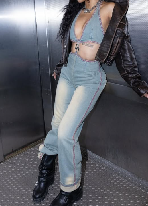 Step into Heat Cutout Denim Jumpsuit
