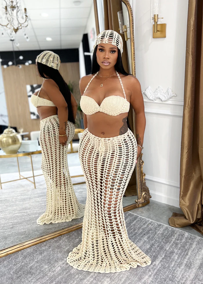 Model 5’2 wearing a size small has stretch self tie top no undergarments attached hat included NO RETURNS