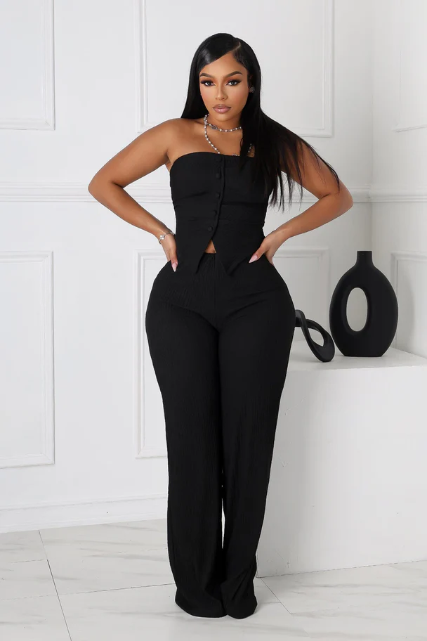 Matching high waist pants featuring a flattering silhouette and a smooth touch feel