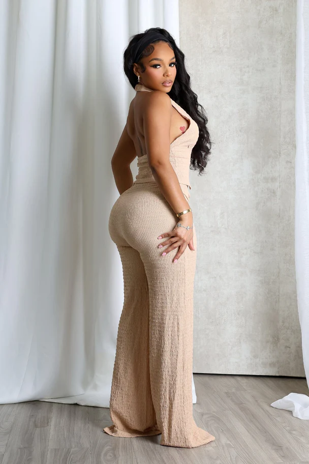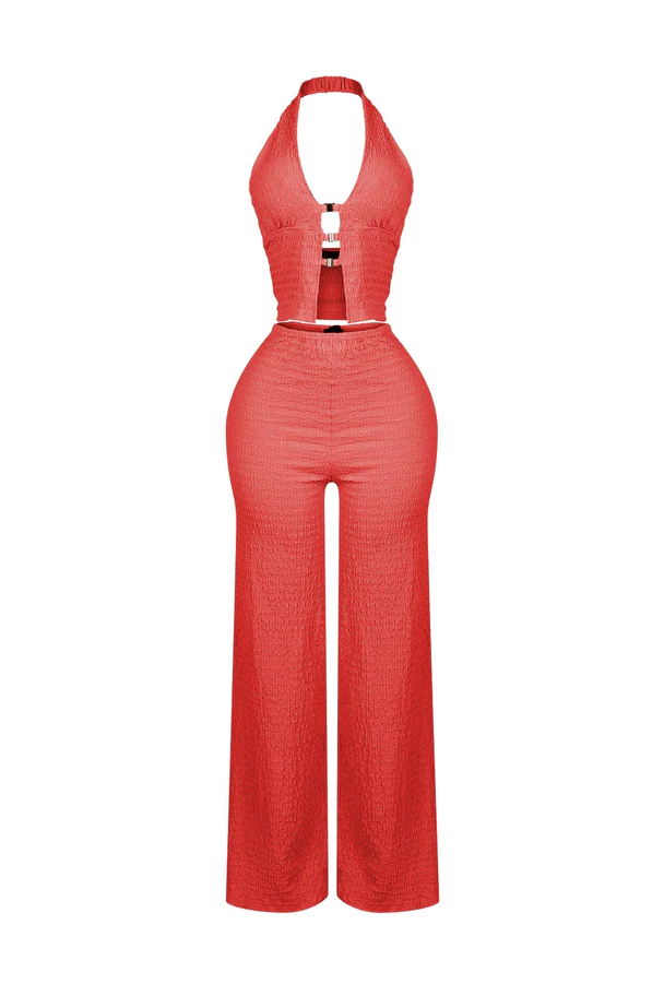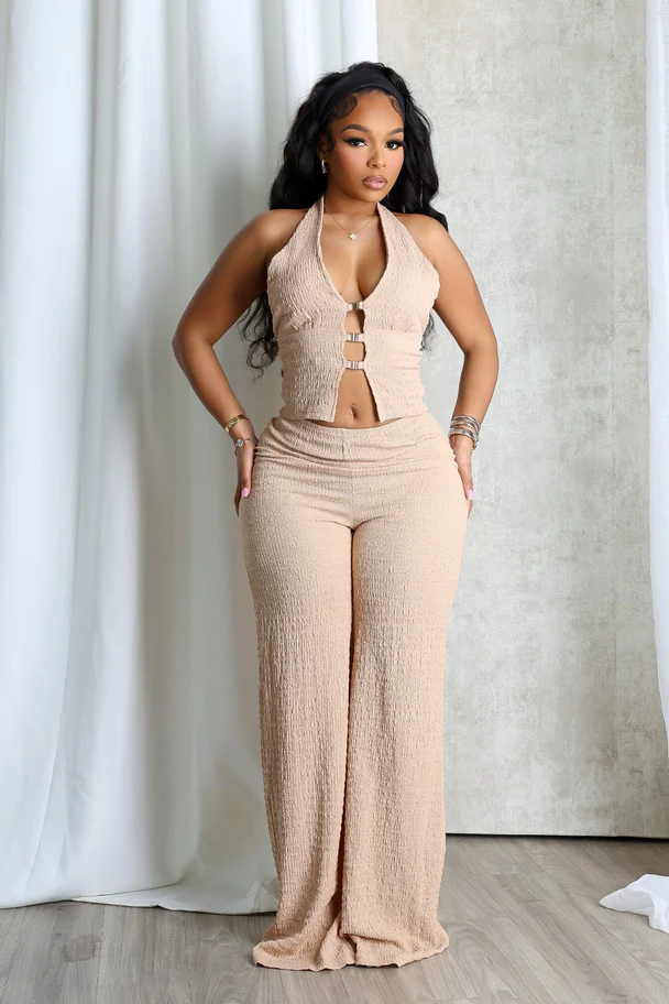 Sleek Motion Metal Halter Top & Pants SET